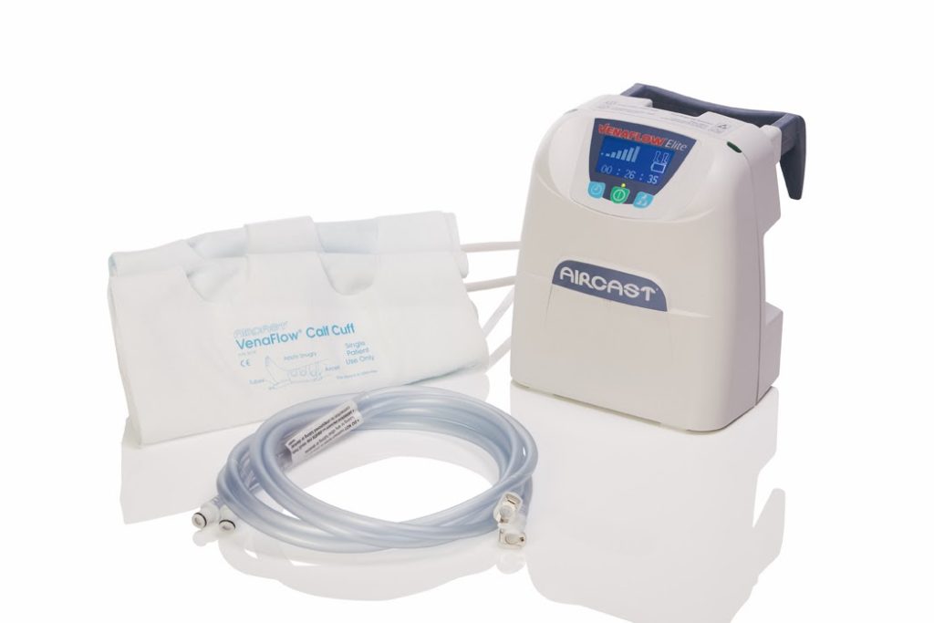 Designed as a prophylaxis for Deep Vein Thrombosis, the VenaFlow Elite System combines two technologies, rapid inflation and graduated sequential compression that work to mimic ambulation and accelerate venous velocity.